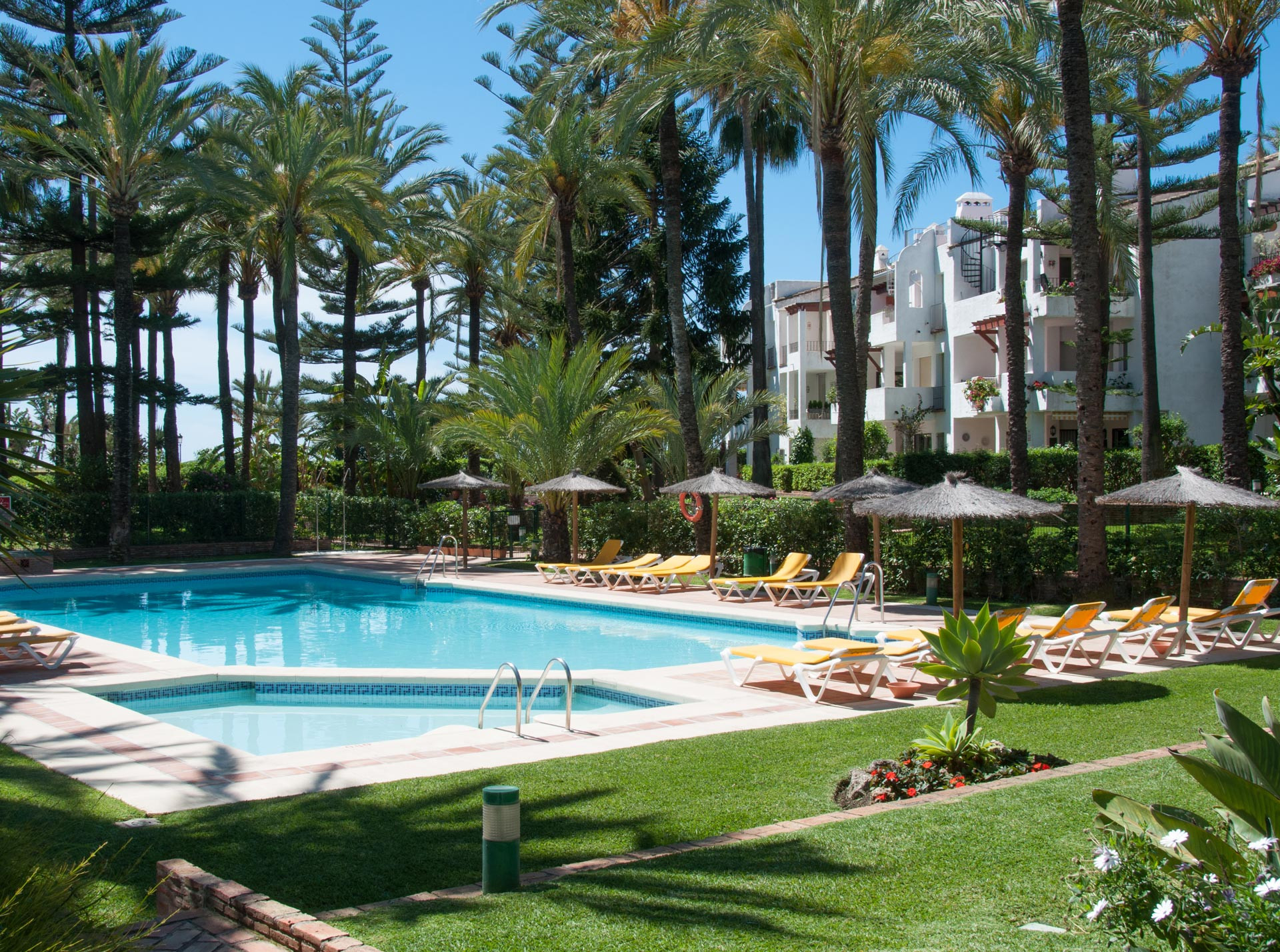 Castiglione es una prestigiosa comunidad cerrada con una piscina al aire libre rodeada de exuberantes jardines tropicales. Tiene acceso directo al paseo marítimo de San Pedro, que llega hasta Marbella. La ubicación es tan buena como es posible y puedes dejar su vehículo en casa. Castiglione está en el corazón de la acción del estilo de vida de la playa, pero aún disfruta de una ubicación tranquila para unas vacaciones relajadas. Puedes elegir entre una gran variedad de restaurantes y chiringuitos, a lo largo del paseo marítimo o en el mismo pueblo. Tanto la ciudad de San Pedro como Puerto Banús se encuentran a poca distancia a pie.