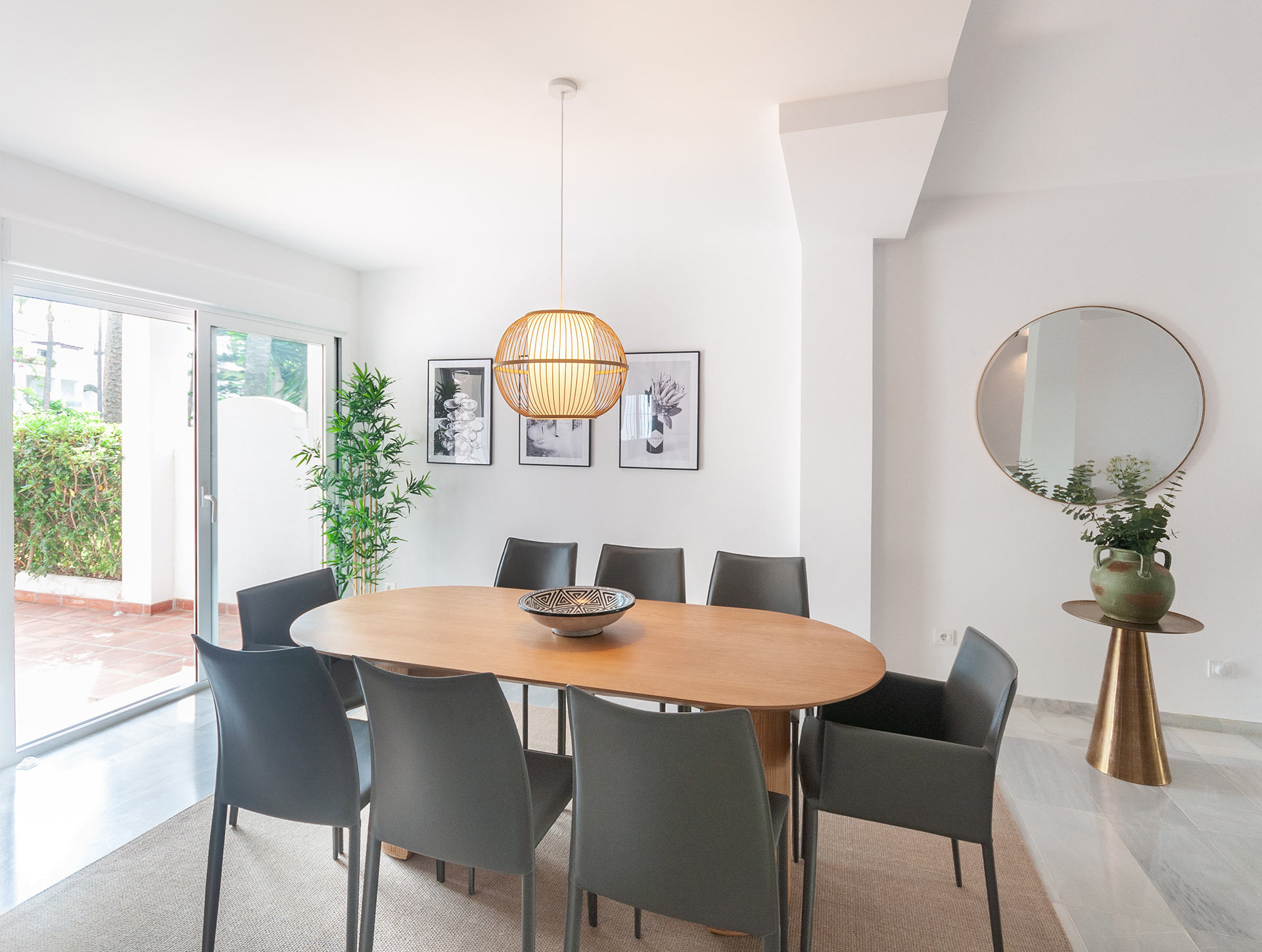 Magnifico adosado totalmente reformado de tres plantas, en un entorno inmejorable, a tan solo 50 metros de la playa. En perfecto estado con excelentes calidades, aire acondicionado, suelo de mármol, chimenea y terrazas.