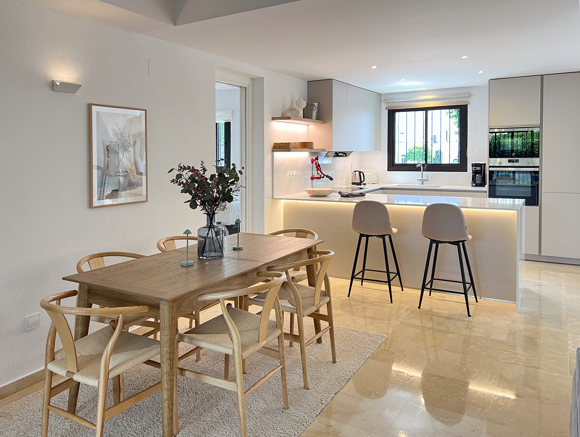 4 soveværelser, 3 badeværelser og et toilet, veludstyret lækkert køkken, en dejlig have og en fantastisk tagterrasse. Gåafstand til strand og promenaden langs stranden, samt til San Pedro by med et hav af hyggelige restauranter, tapas barer osv. Thomas og Collen var fantastiske værter som var hurtige til at svare hvis vi havde spørgsmål.