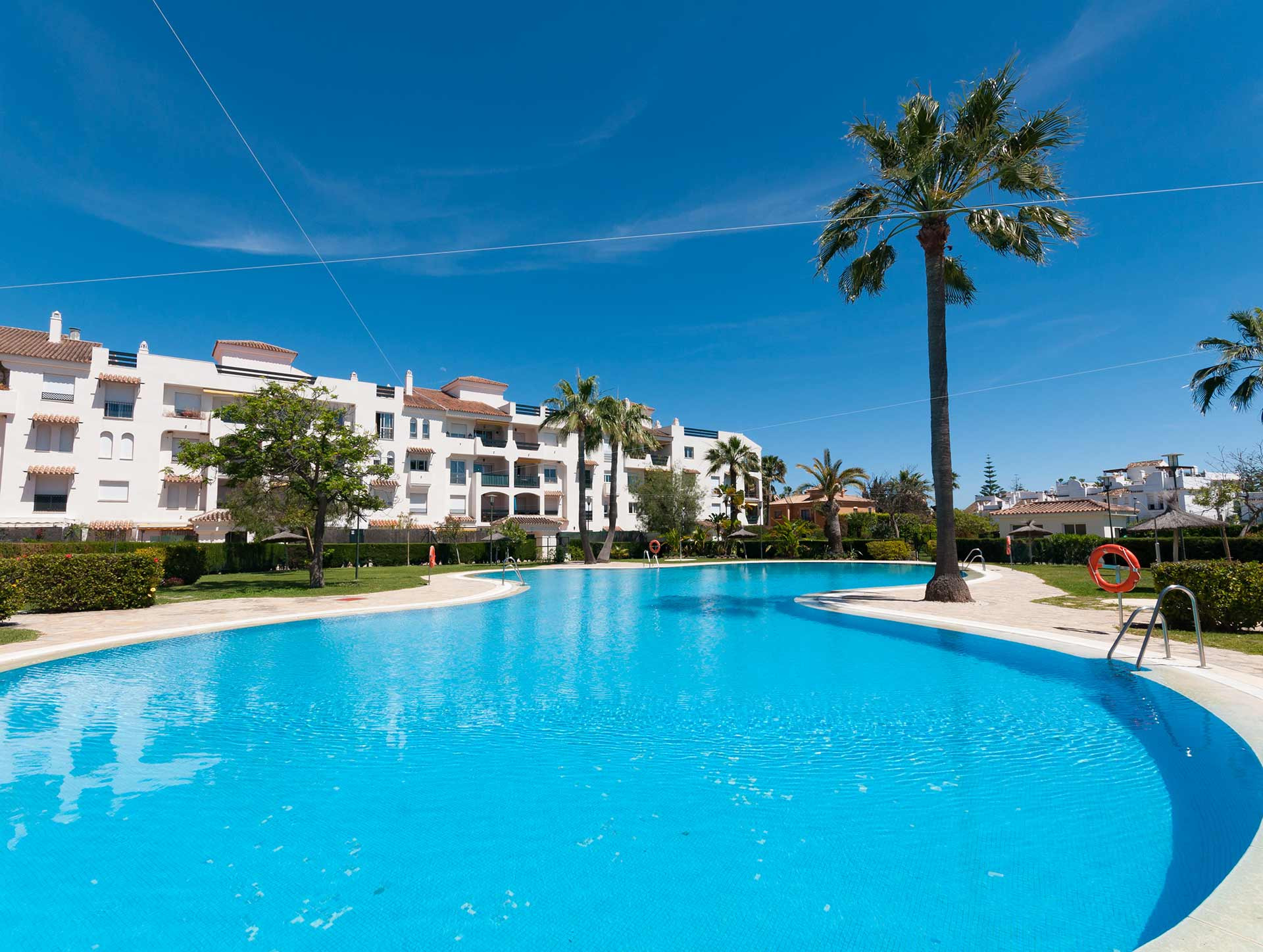 Locrisur is a pleasant and quiet complex close to a host of amenities yet with a quiet neighbourhood feel. It boasts lovely grounds with 2 swimming pools and a paddle tennis court; and within walking distance to the local supermarket and restaurants. Just a few minutes stroll down the street and you’re on the renowned beach promenade stretching all the way to Marbella. Here you will find numerous bars and restaurants along the way.