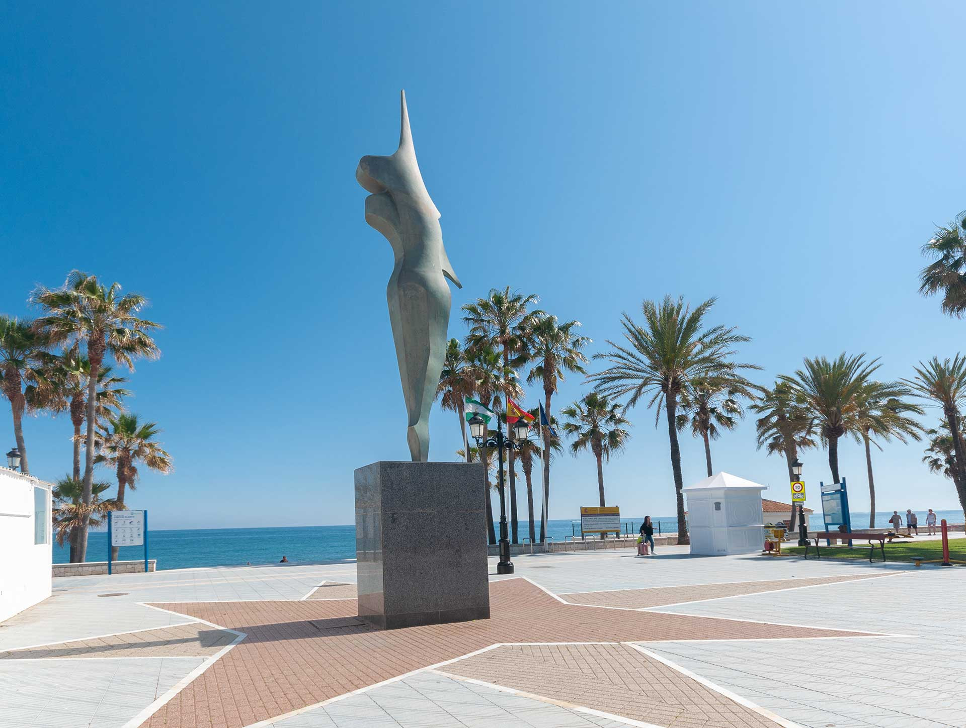 Nueva Alcantara is the new part of town with wide tree-lined avenues leading down to the beach. On the waterfront, the 2 km sweeping tiled promenade serves as an open-air gym with exercise machines and is always bustling with joggers, strollers and dog walkers. It is dotted with chiringuitos all the way along, most of them offering Mediterranean cuisine and, of course, the ubiquitous thirst-quenching tinto de verano. The promenade also links up to Puerto Banus and it is possible to walk all the way to Marbella along the sea front.